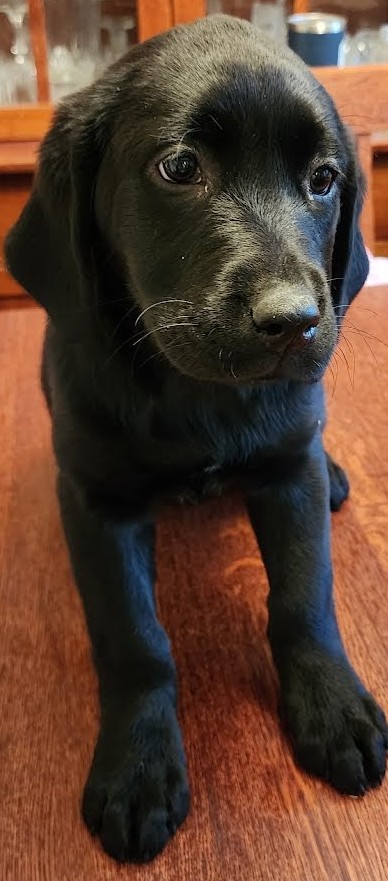 I gave up, but Joe continued the search. Every day, he went online looking for dogs. On December 23, 2023, he came upon a picture of a beautiful Black Lab puppy. We fell in love with her soulful eyes. We called the seller, who lived about 30 minutes away. Less than 12 hours later, Storm was ours.